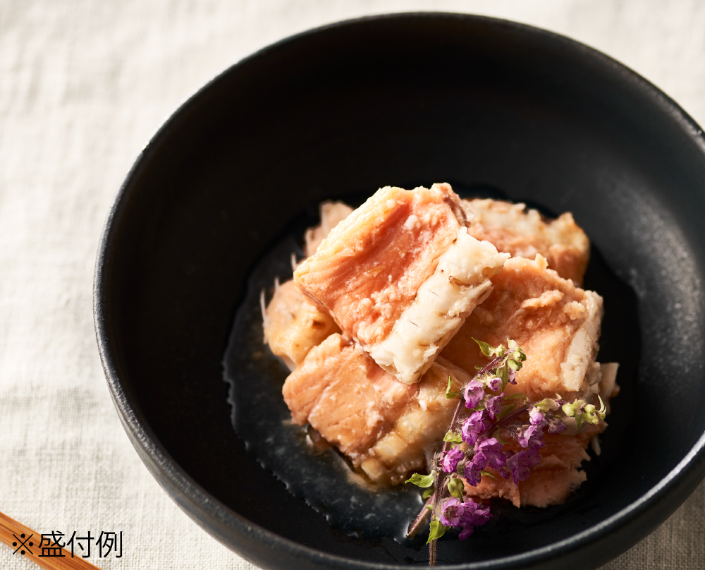 脂がのったキングサーモンを骨ごと水煮にしました。 柔らかく煮込んだ中骨はお酒の肴やサラダなどに最適です。 1缶で 2,200 mgのカルシウムが摂れるので健康管理の一助になれば嬉しいです。