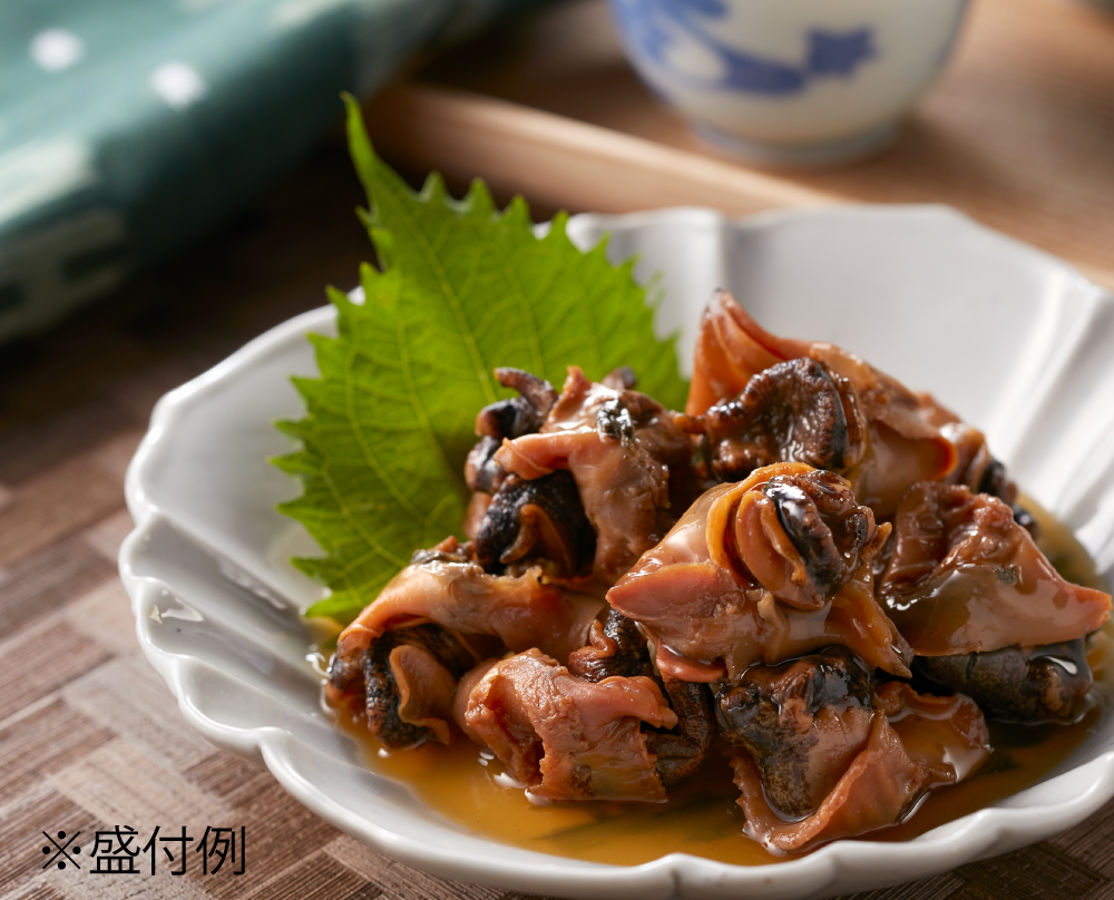 北海道産の「つぶ貝」を使用。 コリコリとした食感と、噛めば噛むほど口の中で広がる旨味がクセになる一品です! そのまま食べても美味しいのはもちろんのこと、お好みで七味唐辛子などを掛けてお楽しみください!